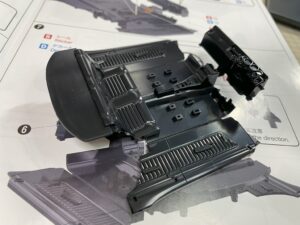 次に、コックピットの組み立てです。まずはこのキットの最大の特徴であるシール貼っています。