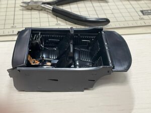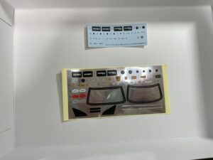 メーター部分等にシールを貼り付け終わったら、運転席・助手席のシートを取り付けて