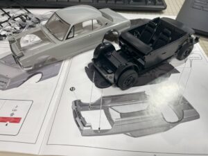 コックピットを取り付けたシャーシにボディを取り付けます。
